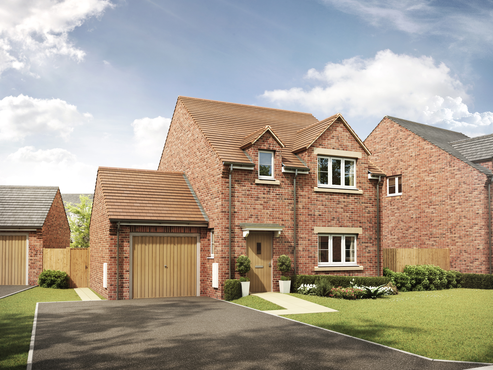 An exclusive house featuring an open plan kitchen / dining room with larder and utility room, living room, master bedroom with en-suite, two further bedrooms and a bathroom.